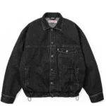 The DENIM 13.5OZ JACKET – WASHED BLACK is a statement piece for modern fashion enthusiasts. Featuring a soft ash-colored faux fur exterior, this hoodie provides both style and comfort. More than just outerwear, it’s a symbol of versatility and urban sophistication, perfect for layering or wearing solo while maintaining a bold, polished look.